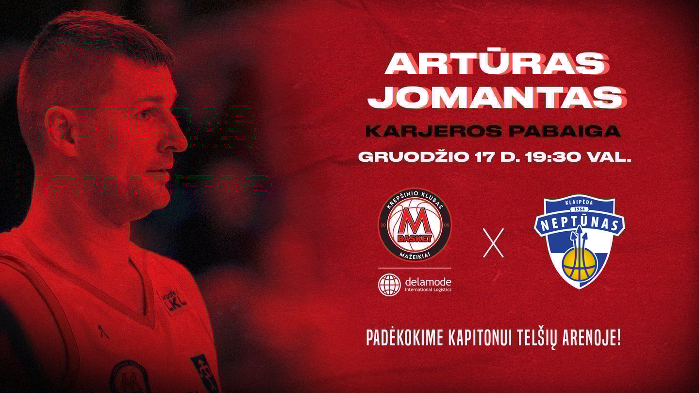 Šių metų gruodžio 17-ąją, visus mažeikiškius norime pakviesti į Telšių areną, kur rungtynėse su Klaipėdos „Neptūno” komanda legendinis Mažeikių krepšininkas Artūras Jomantas sužais paskutines savo karjeros rungtynes.